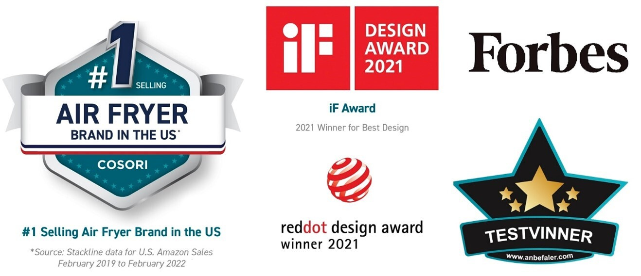 Cosori je nejprodávanější značka horkovzdušných fritéz v USA a je držitelem mnoha prestižních ocenění. Cosori je značka, které můžete důvěřovat.