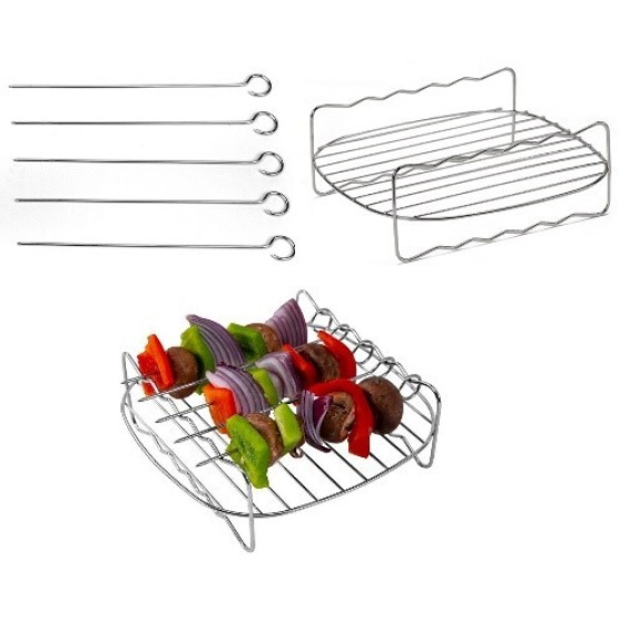 K fritéze COSORI dostanete zdarma 5x jehlu na špízy s mřížkou pro grilování. Jehly na špízy umožňují grilovat různé druhy masa nebo zeleniny současně, a to bez obav z míchání chutí. Na grilovacím roštu si připravíte třeba šťavnaté steaky.